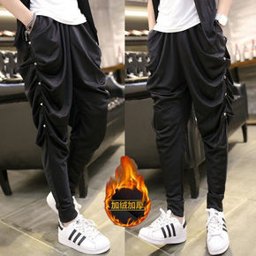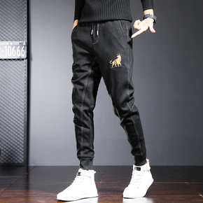 春秋冬季新款ins加绒卫裤男韩版潮流宽松束脚裤学生...