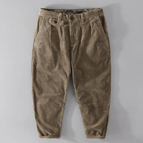 秋冬百搭灯芯绒裤子男日系复古宽松小脚条绒裤痞帅休闲...