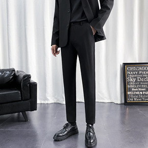 爆款加绒裤子男垂感单褶韩版修身小西裤秋冬厚款直筒男...