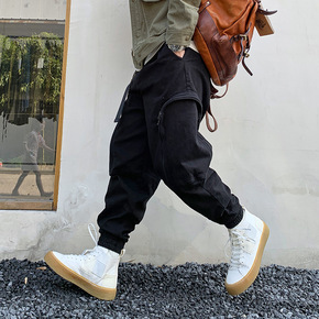 现货,加绒加厚工装裤黑色多口袋男束脚裤潮流休闲长裤...