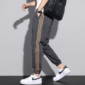 2022夏季冰丝休闲裤男士简约潮流九分束脚裤高品质...