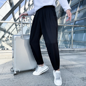 男士春夏修身九分裤韩版新款2022青少年休闲冰丝松...