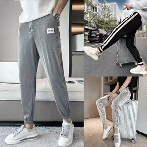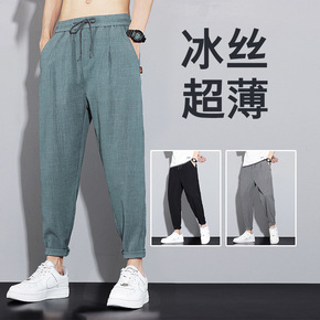 夏季冰丝新款休闲束脚九分裤男薄天丝韩版百搭时尚透气...