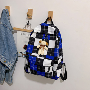 克莱因蓝书包女 韩国ins高中大学生棋盘格子背包大...