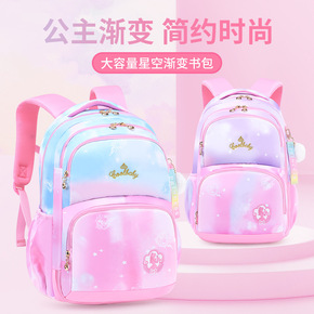 新款网红渐变色小学生书包1-2-3-6年级女孩轻便...