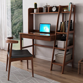 北欧书桌书架组合电脑台式桌家用初中学生书柜一体简约...