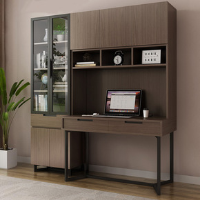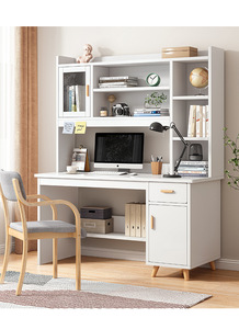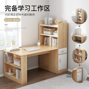 书桌书架组合简约学习桌电脑台式桌家用卧室书柜一体学...