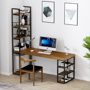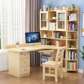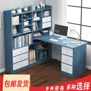 电脑桌台式家用书柜书桌一体书架组合简约卧室学生转角...