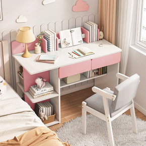 儿童学习桌家用书桌书架一体桌卧室小学生写字桌男孩女...