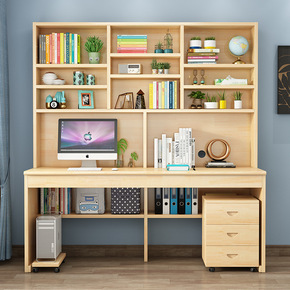 实木书桌书架组合家用带书柜一体电脑桌台式学生写字桌...