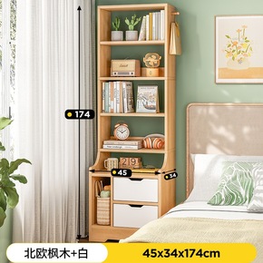 床头书架卧室置物架落地小型窄床边柜多层收纳柜子桌面...