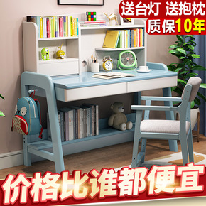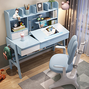 儿童书桌书柜组合简约家用学生男孩写字桌椅套装实木可...