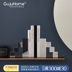 现代简约书房金属亚克力书架摆件酒店售楼处样板房间书...