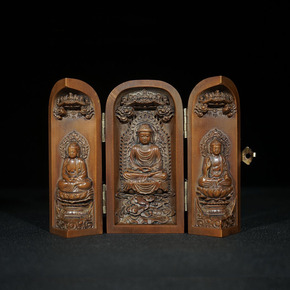木质工艺品做旧仿古古玩中式客厅书房装饰黄杨木三开盒...