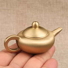 黄铜小茶壶创意模型桌面摆件中式迷你茶壶手把件书房复...