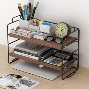 简易书架桌面置物架办公桌收纳架桌上多层铁艺书桌整理...