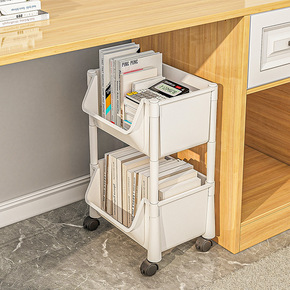 桌下书架阅读架办公室桌面置物架带轮可移动落地简易收...