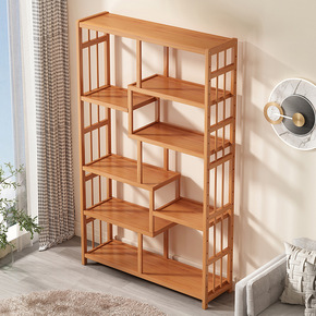 书架置物架落地简易收纳实木儿童桌面展示架客厅楠竹简...