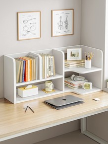 学习桌收纳置物架白色简易书桌上的书架创意艺术桌面小...