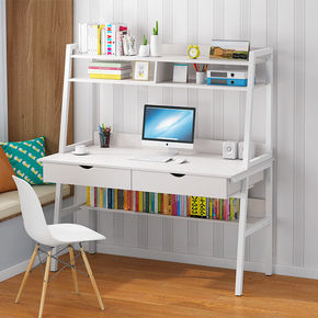 北欧电脑桌书架组合女孩卧室梳妆台书桌一体简约学生写...