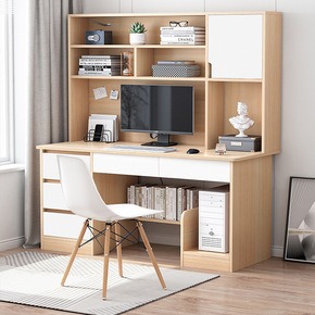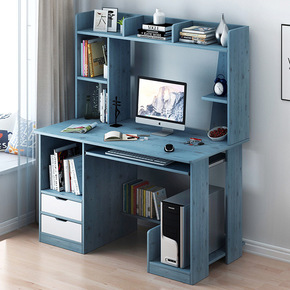 电脑桌台式桌家用简约学生卧室小书桌书架一体桌组合简...