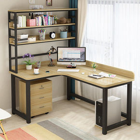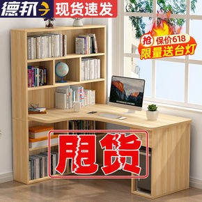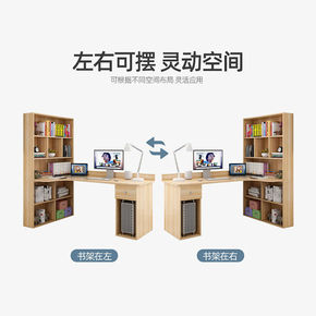 书桌简易家用办公卧室学生学习桌子角落书架一体桌转角...