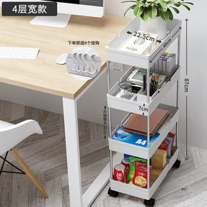 书桌旁小书架可移动置物柜带轮小型置物架桌下收纳柜子...