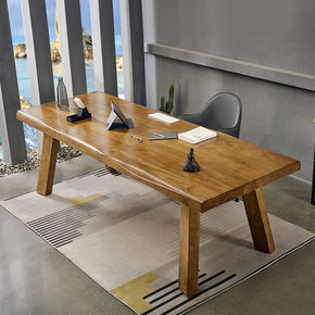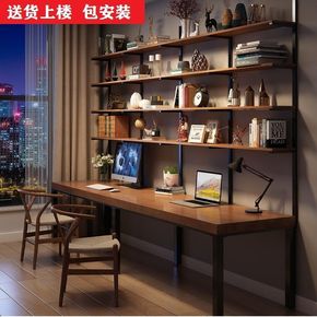 双人实木书桌书架组合书房家用长桌写字台学习电脑桌一...