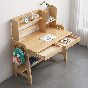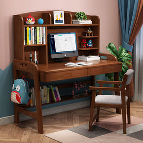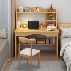 实木书桌书架一体电脑桌小户型儿童学习桌女孩卧室写字...