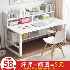 书桌电脑台式桌书架组合家用简约卧室学生简易写字桌办...