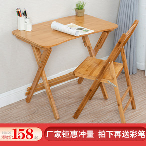 竹写字桌可折叠儿童学习桌实木家用课桌小学生书桌可升...