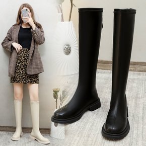 长筒靴女2021秋冬季新款女靴复古英伦风粗跟瘦瘦靴...