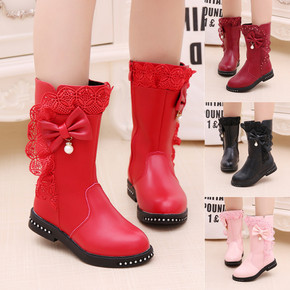 21秋冬季女童高筒靴子中小童鞋儿童长筒靴女孩公主皮...