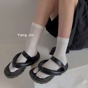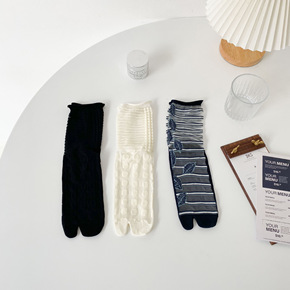二趾袜子女薄款日系甜美卷边长袜ins个性纯色脚趾棉...