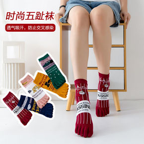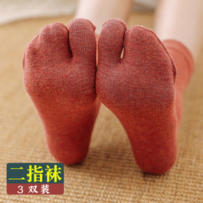 店内任意3双包邮秋季新品中筒薄棉分趾两二指女款黑数...