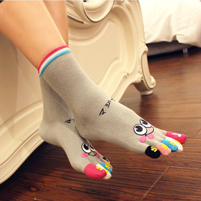 情侣五指袜中筒男女分脚趾全纯棉中筒五指袜 可爱笑脸...