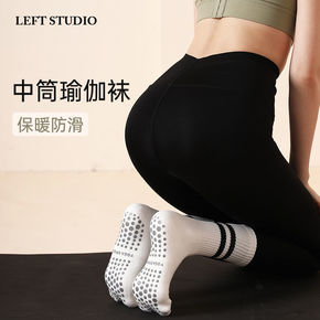 瑜伽袜子中长筒防滑专业女秋冬舞蹈运动室内专用健身普...