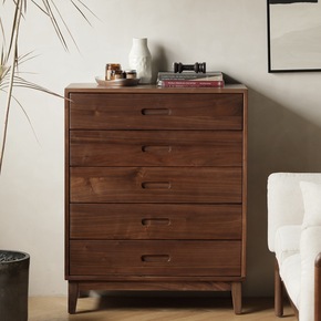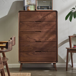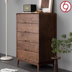 北美黑胡桃木五斗柜北欧全实木客厅玄关柜收纳柜抽屉储...