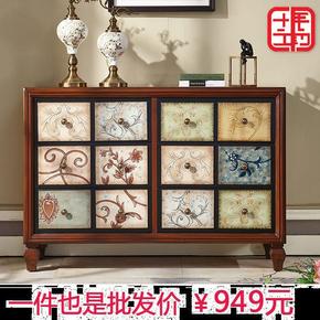 美式斗柜实木彩绘玄关柜靠墙客厅柜子储物柜复古五斗橱...