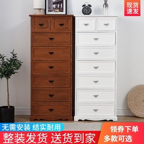 美式实木五斗柜收纳柜储物柜卧室现代简约白色九斗柜轻...