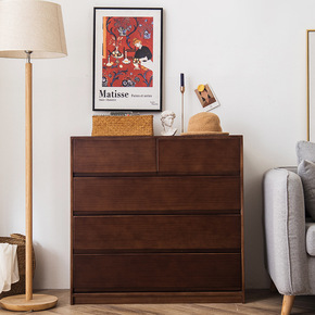 实木色家具简约现代五斗橱卧室储物柜抽屉柜大容量五斗...