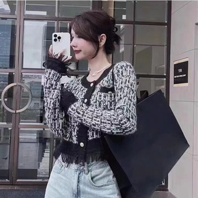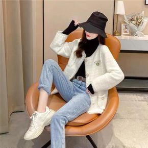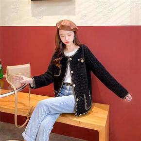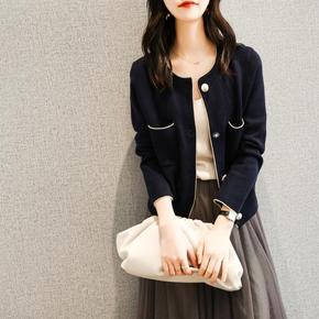 秋季新款小香风珍珠钻扣羊毛针织开衫外套女小外套开衫...