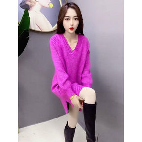 秋冬季新款韩版慵懒风毛绒绒镂空露背茧形打底针织衫中...