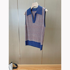 好美的配色!复古翻领金豆子羊绒羊毛条纹针织衫法式马...