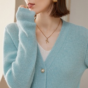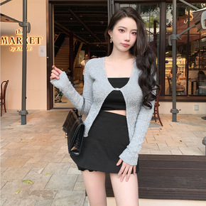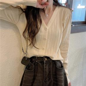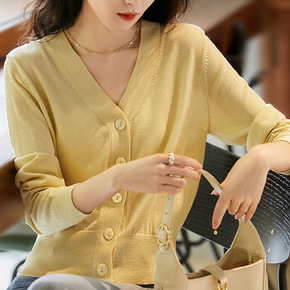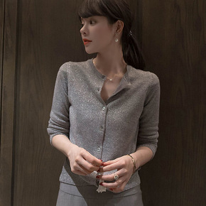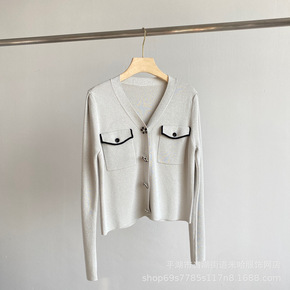 扬美工厂店秋冬新款亮丝小香风针织薄外套女宽松V领开...