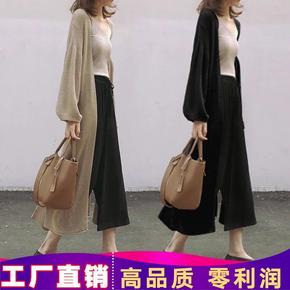 长款开衫2022春夏韩版宽松冰丝针织外套女大码灯笼...
