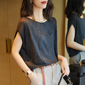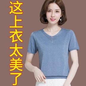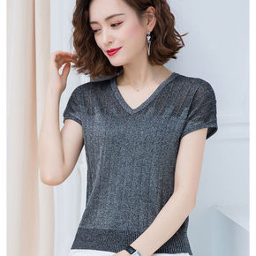 全身加亮丝v欧根纱针织上衣...