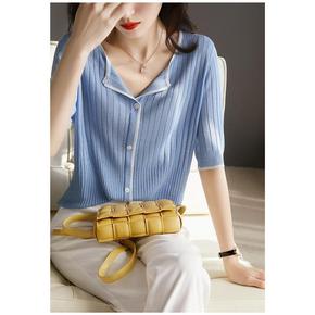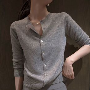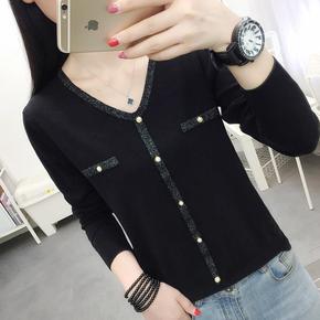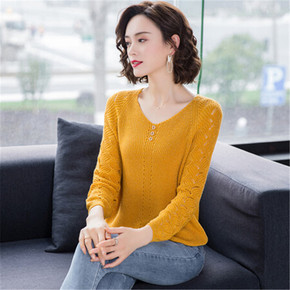 春装薄款v领针织上衣韩版2022新款镂空亮丝打底衫...