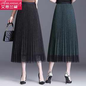网纱半身裙女春夏2022新款高腰中长款蕾丝边纱裙亮...