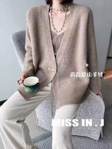 欧洲站2021秋冬新品侧边盘扣休闲亮丝金标羊绒羊毛...